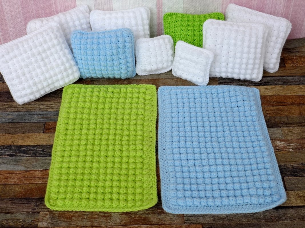 Ihr könnt die Kissen/den Teppich in allen Größen und Farben fertigen - so wie Ihr mögt und es für Eure Puppenstube braucht.
