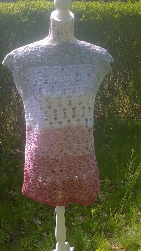 Ich habe für Konfektionsgröße 36 1000m eines Farbverlaufgarns benötigt. Damit ist meine Tunika recht weit geworden, weil ich etwas locker luftiges für den Sommen haben wollte.