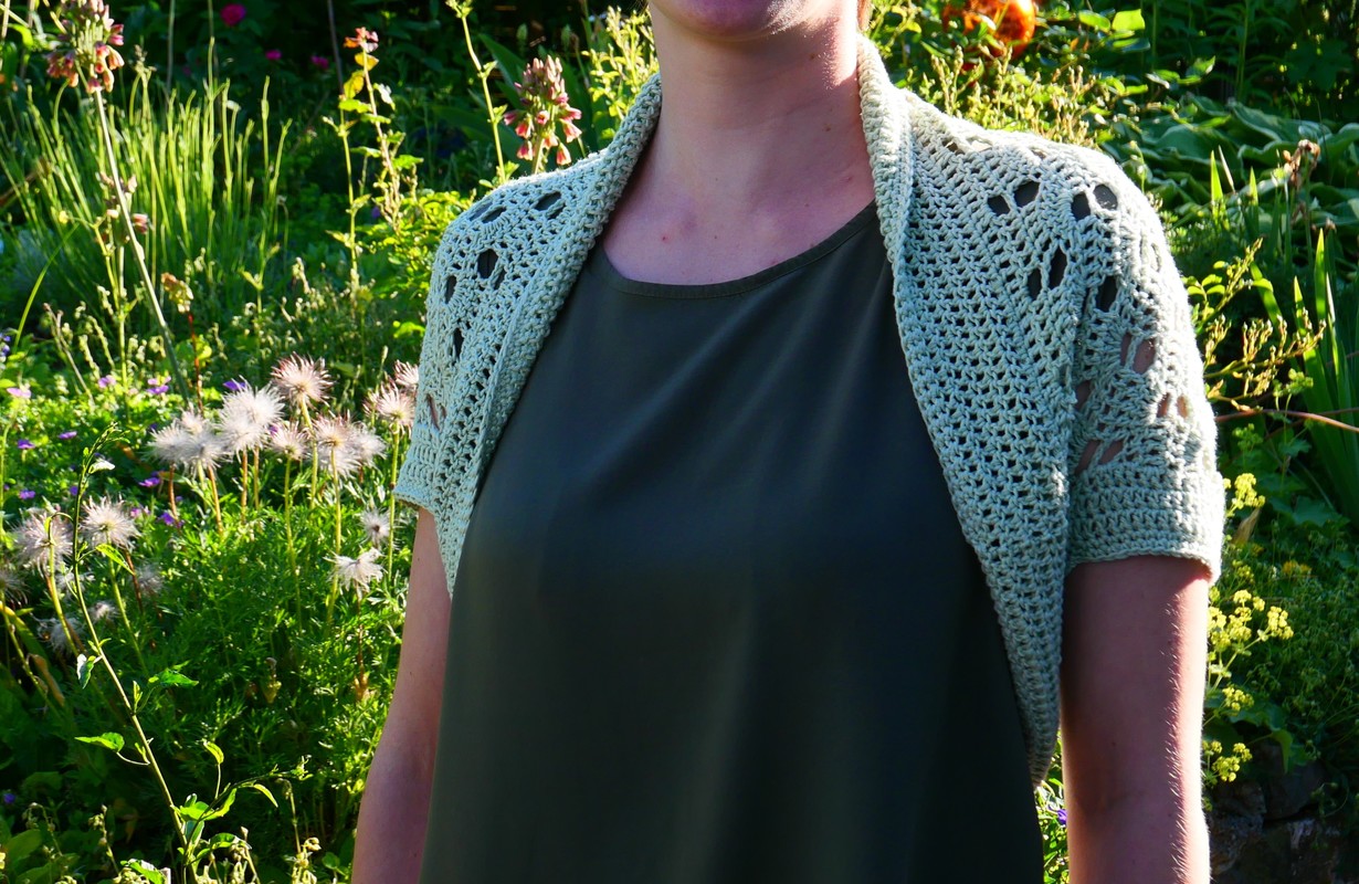 Das Sommerjäckchen Isabelle ist ein sommerliches kleines Jäckchen, für kühlere Abende. Es passt zu jedem sommerlichen Outfit und trägt sich genausogut zum Sommerkleid wie zu einer Jeans. Es wird wie ein Shrug/ Seelenwärmer gearbeitet und ist im Nu fertig.
