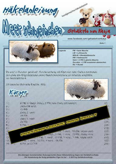 Schöne Anleitung, leicht verständlich. Ganz flott hat man ein wunderschönes Meerschweinchen. Daumen oben!
