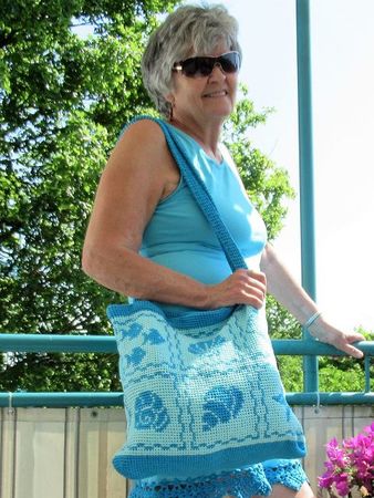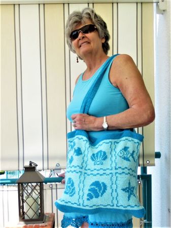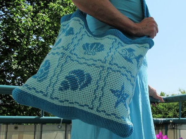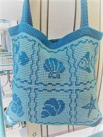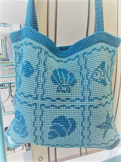 Mit dieser wunderschönen Strandtasche in Aquafarben mit Motiven von Meeresbewohnern machst du im Urlaub überall eine gute Figur, sei es am Strand, auf dem Markt oder beim Shoppen.