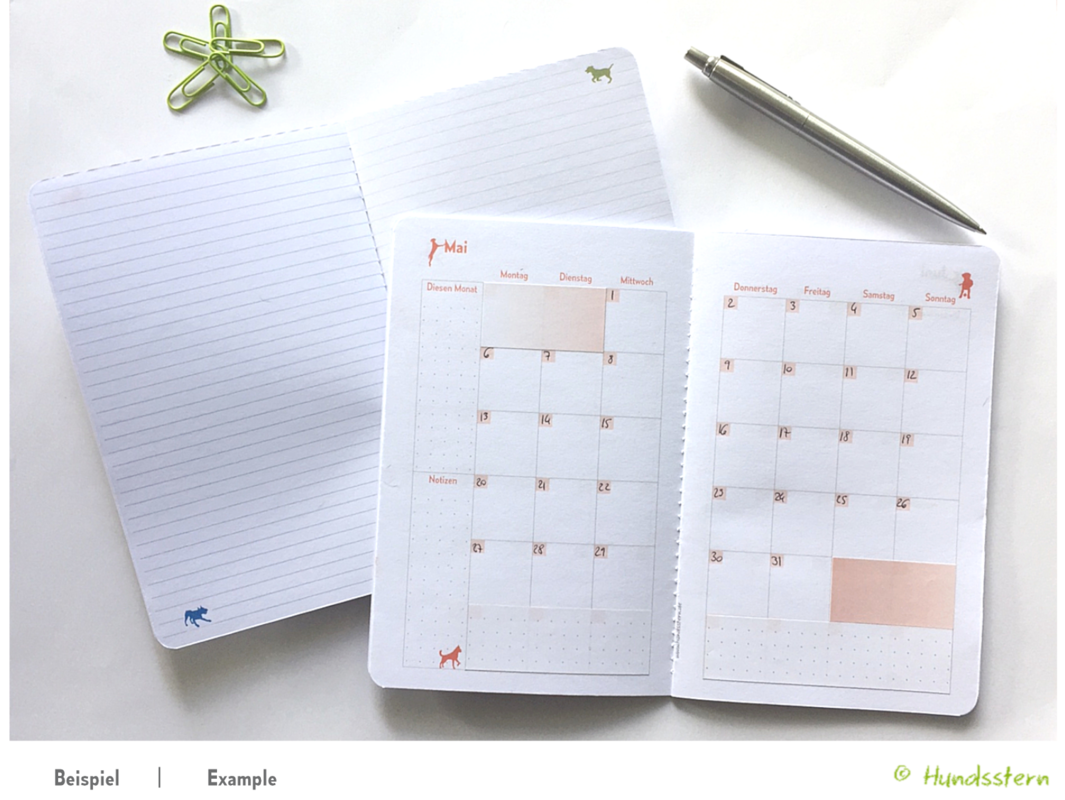 Die Einbände werden einseitig gedruckt, die Kalenderseiten sind für beidseitigen Druck angelegt.