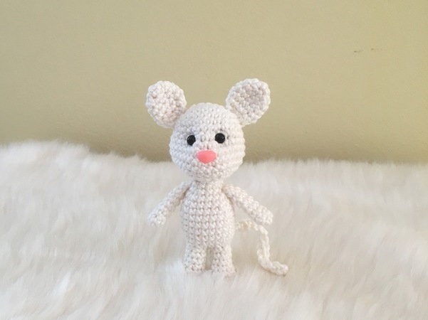 Maus Milli ist ganz schnell gehäkelt und auch als Taschenbaumler geeignet.