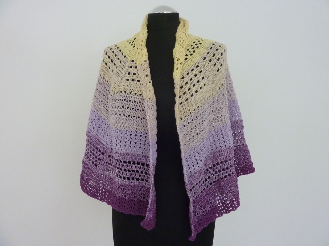 Mit dem angegebenen Garn erreicht „Ametista“ eine Größe von ca. 65 x 140 cm – perfekt, um es lässig über die Schultern zu legen oder stilvoll zu drapieren.
