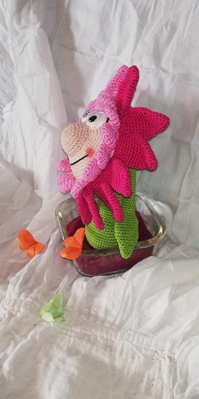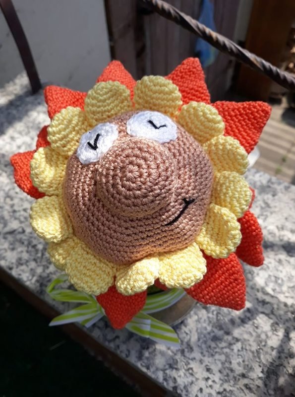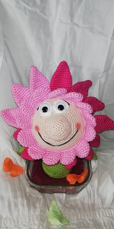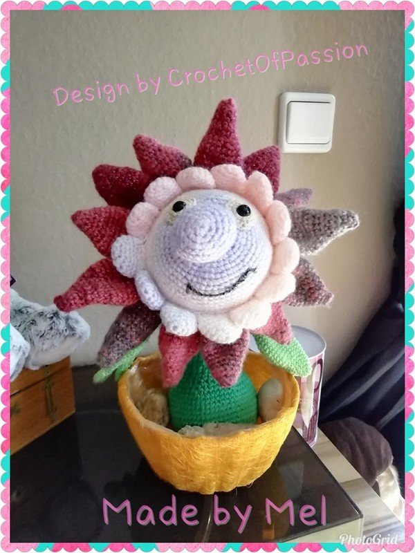 Mit der angegebenen Wolle wird die Blume ca. 25 cm groß.