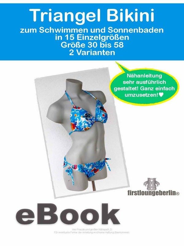Triangel Bikini BH & Hose im Set Damenbadeanzug 15 Größen Gr. 30 bis 58 Nähanleitung mit Schnittmuster. Egal welche Körpermaße Du hast, Du kannst auswählen von Cup AAA bis E und die Cups sind noch erweiterbar.