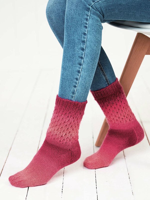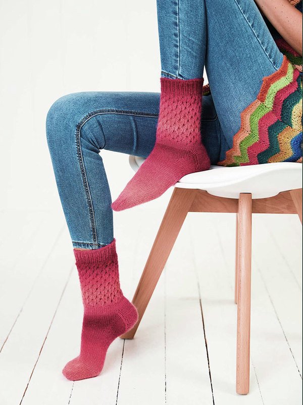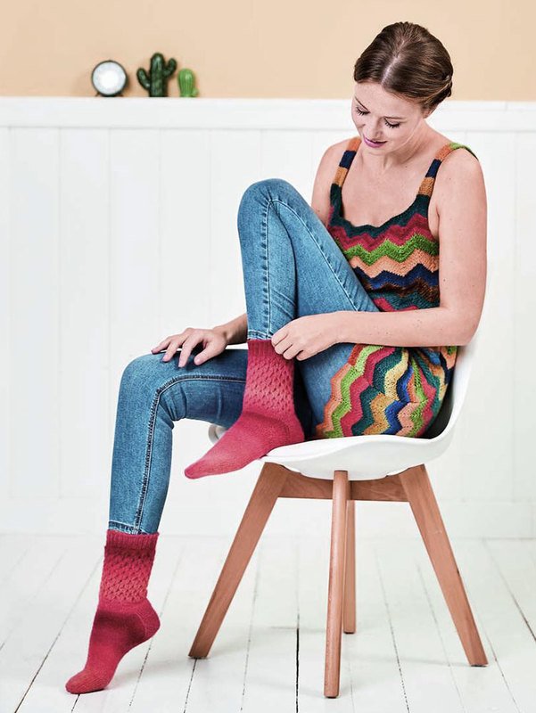 Hübsche Socken mit einem versetzten Margeritenmuster.