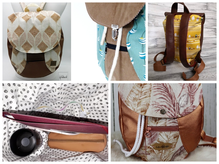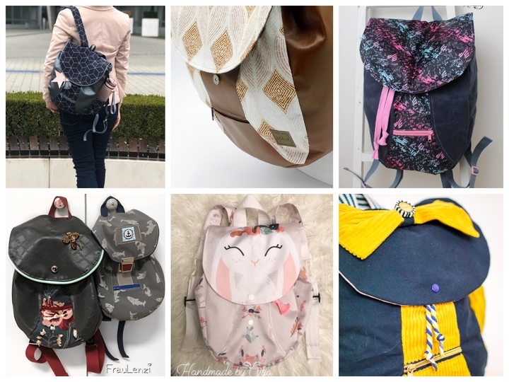 Beim Probenähen für mein eBook „Lenkradflitzer – eine große Lenkradtasche“ entstand die Idee eines Rucksackes, der unten eine Rundung hat, mit einer Klappe/Deckel und Tunnelzug geschlossen wird. Natürlich gab es zusätzlich noch etwas mehr Schnickschnack, damit der Rücken`hopser ebenfalls etwas ganz Besonderes ist. Die seitlichen Teilungen kennt ihr bereits von meinen eBooks „Rückenflitzer“ und „Schulterhopser“, doch dieses Mal habe ich ein kleines praktisches Reißverschlussfach mit eingebaut. Optisch ein absoluter Hingucker und für Kleinigkeiten, wie zB. Eisgeld/Einkaufschip etc angedacht. Das Innere des Rucksacks ist mit einer großen Reißverschlusstasche und einem Flaschenhalter ausgestattet, welchen man optional auch Außen platzieren kann. Zusätzlich gibt es weitere Tutorials wie,