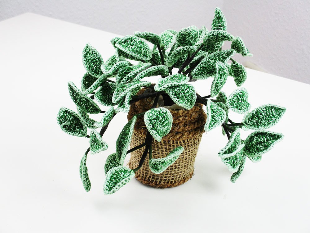 Vor dem Gift der gehäkelten Efeutute brauchen Sie sich nicht fürchten. Sie hat keine giftigen Substanzen in sich und sieht dem Original aus Mutter Natur täuschend ähnlich.