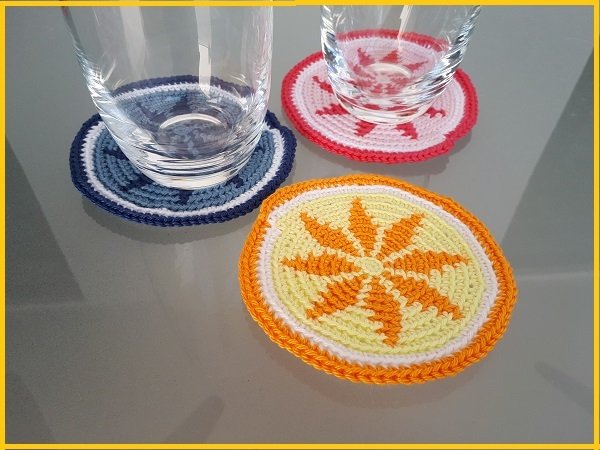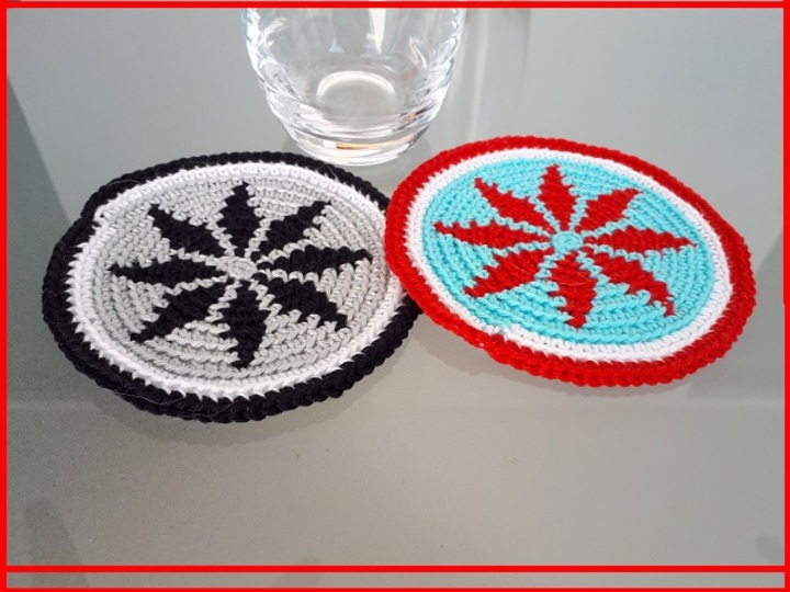 Diese Untersetzer werden nicht mit normalen festen Maschen gehäkelt. Wenn du also dieses Muster nicht so häkelst wie ich die spezielle Technik in meinem Grundkurs erkläre, wird das Ergebnis nicht ganz das gleiche sein wie das, das auf dem Foto abgebildet ist.