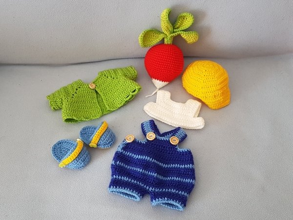 Die Größe der Puppe liegt ca. bei 30 cm. (bei Verwendung der angegebenen Nadelgröße und Garnstärke)