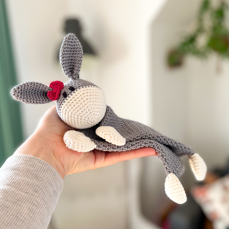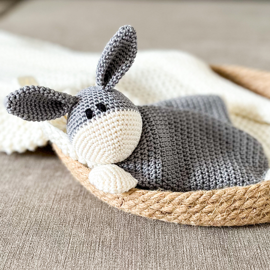 Mit dieser Anleitung kannst du dir dein eigenes Esel-Schnuffeltuch häkeln.