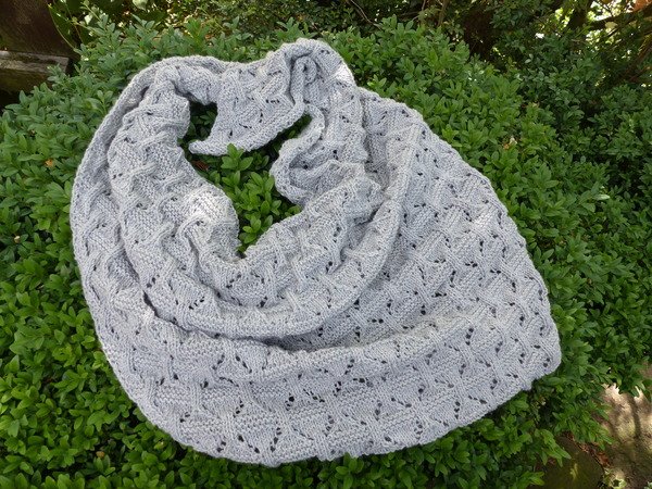 Ich habe meinen grauen Schal mit ROWAN super fine merino 4ply gestrickt.