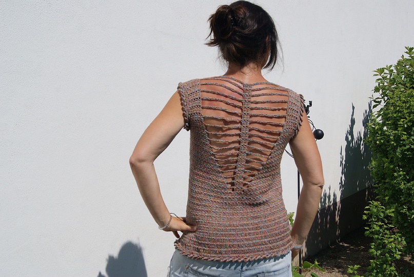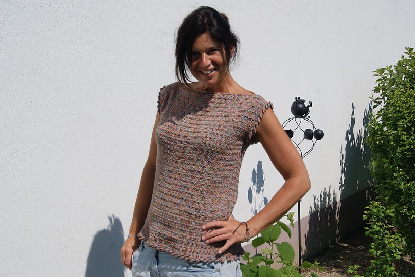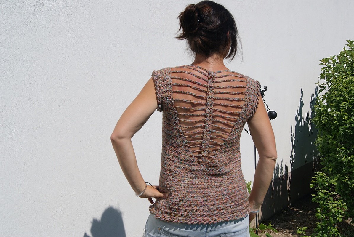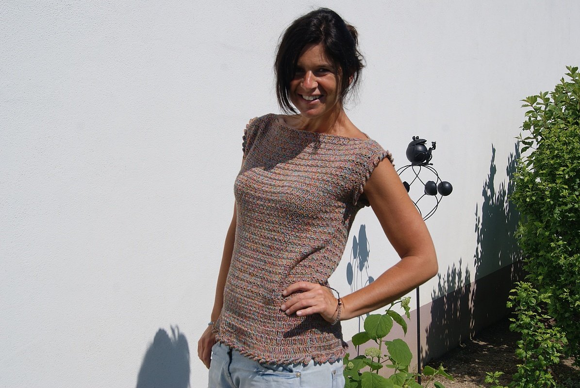 Nein, ich habe es nicht doppelt genommen - das Muster wirkt von weitem vielleicht dichter, als es ist. Es soll ja ein luftiges Sommertop sein :-)!