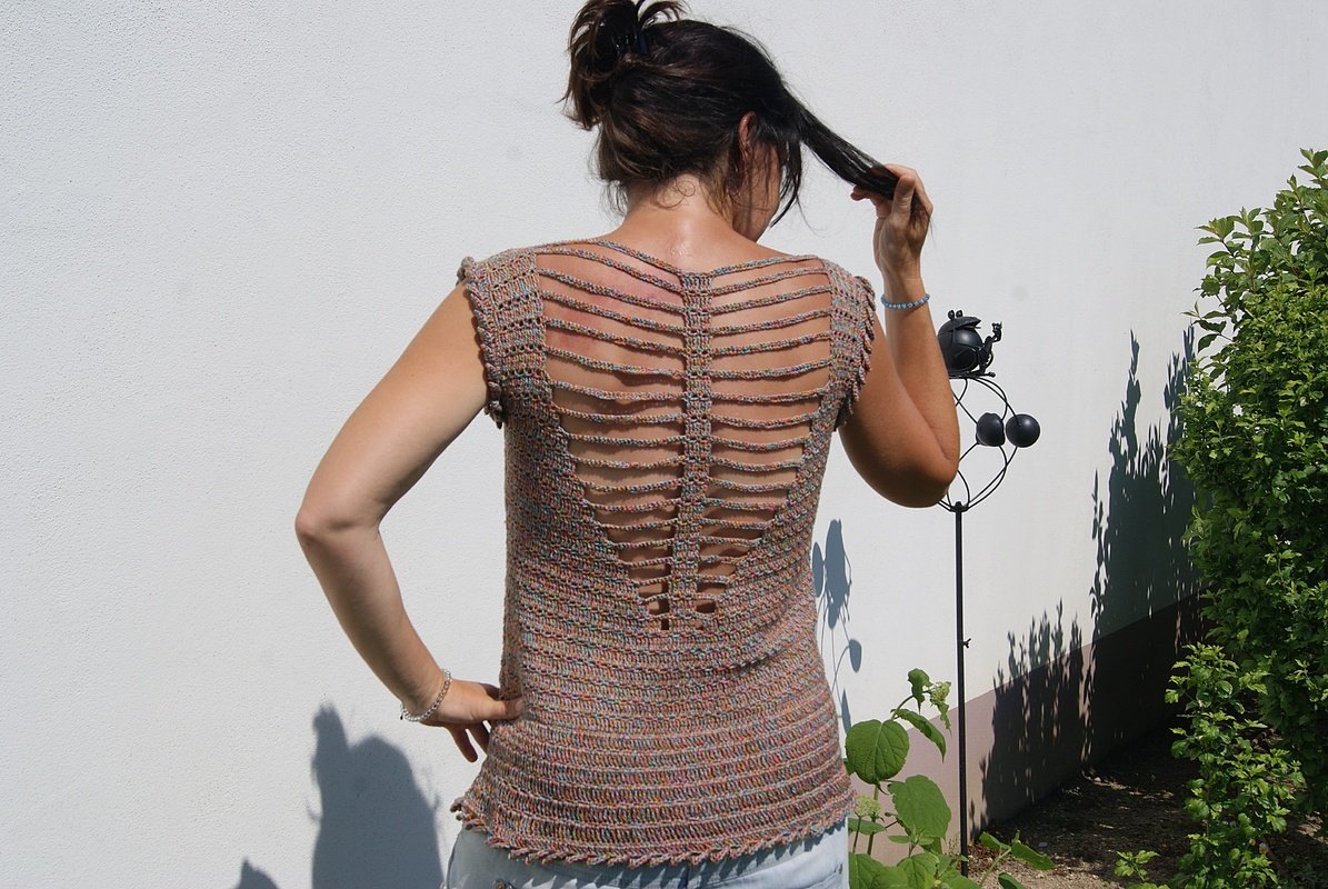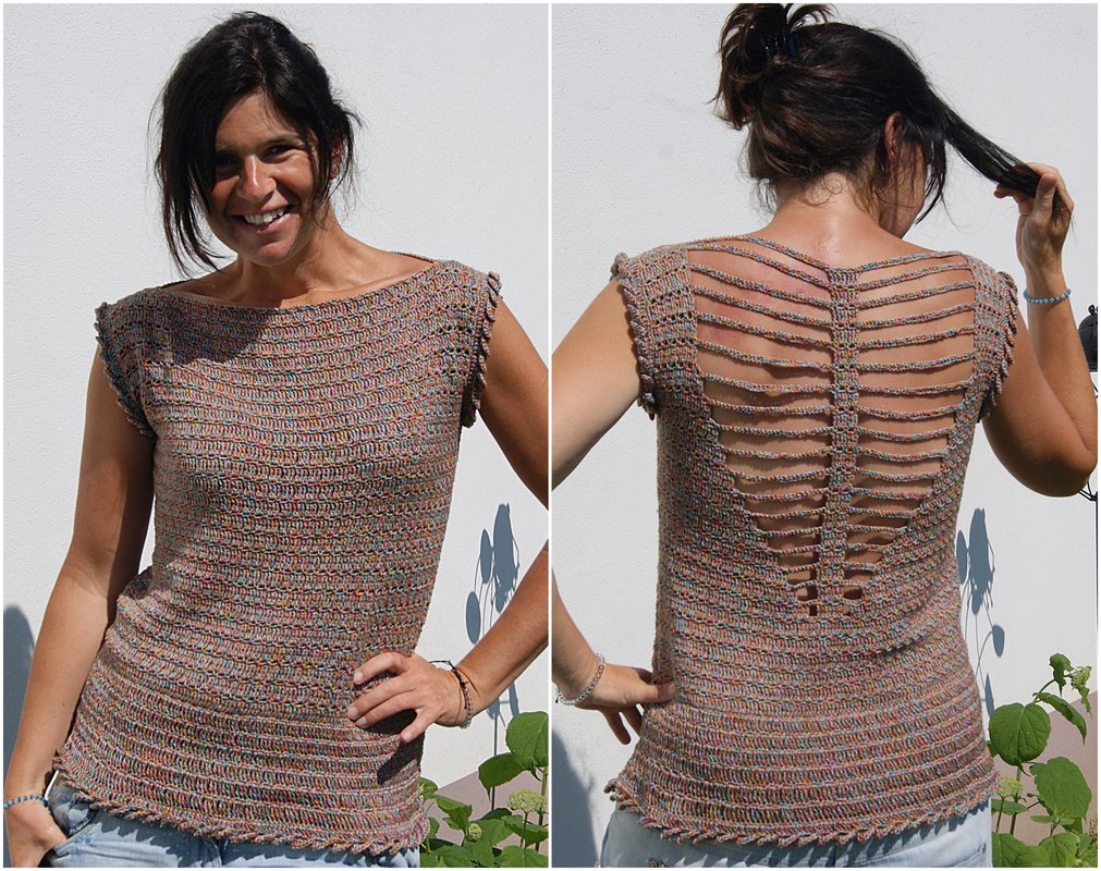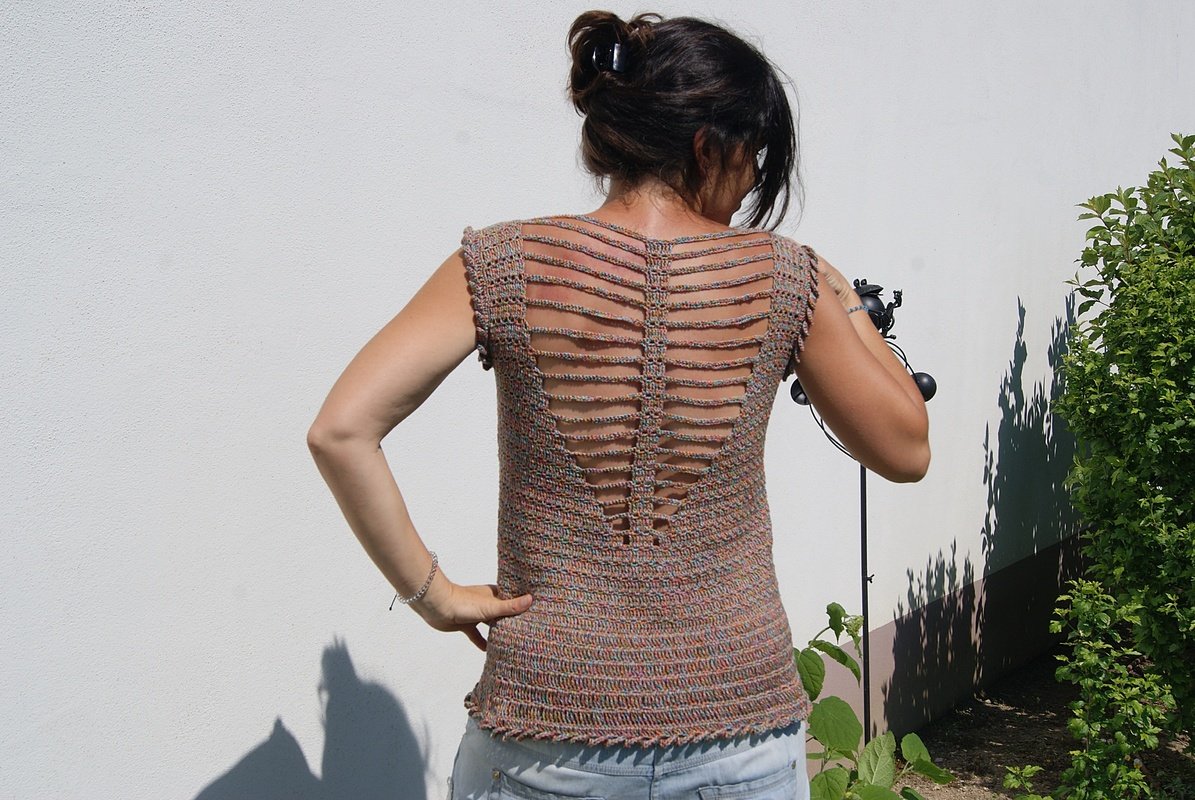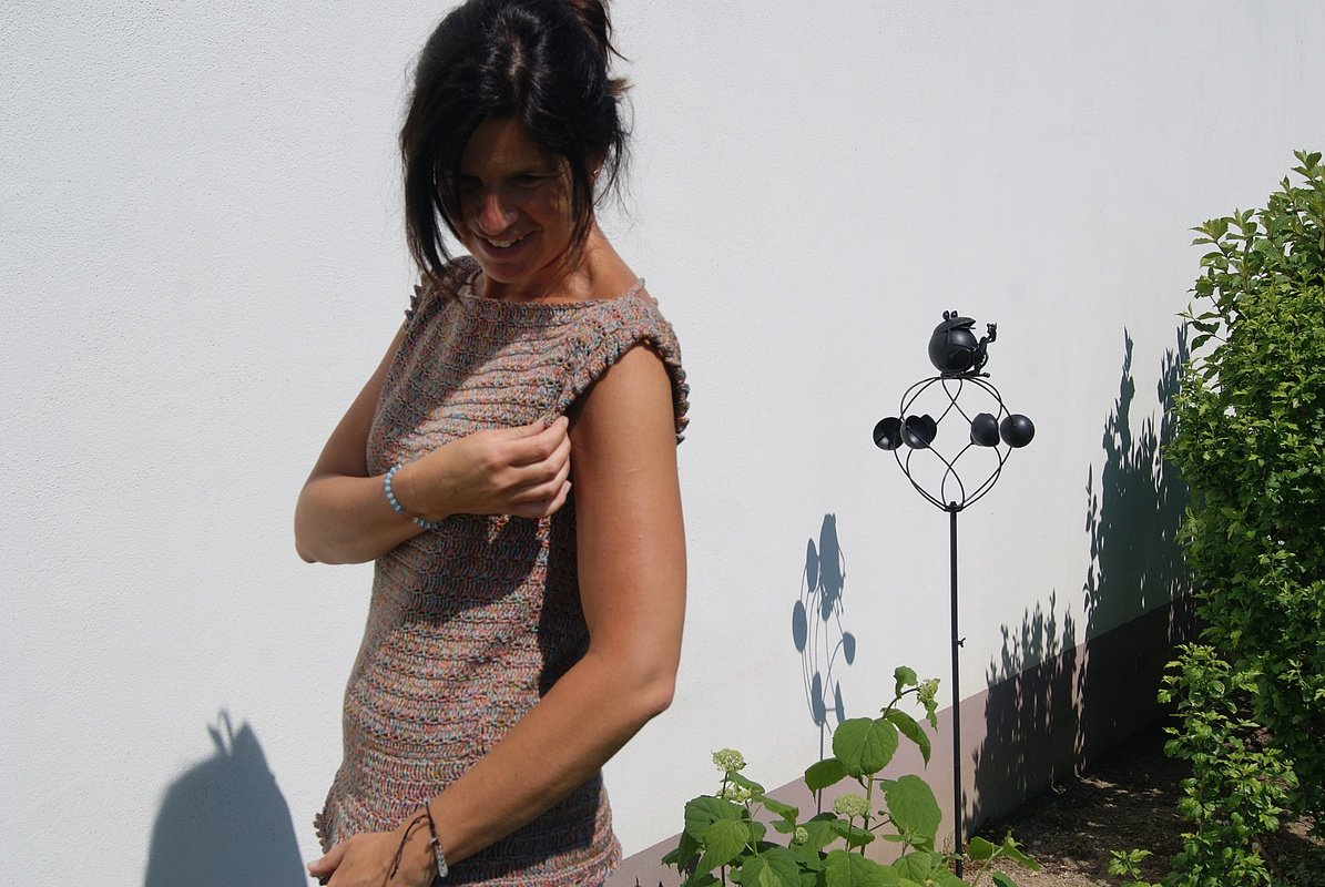 Nein, ich habe es nicht doppelt genommen - das Muster wirkt von weitem vielleicht dichter, als es ist. Es soll ja ein luftiges Sommertop sein :-)!