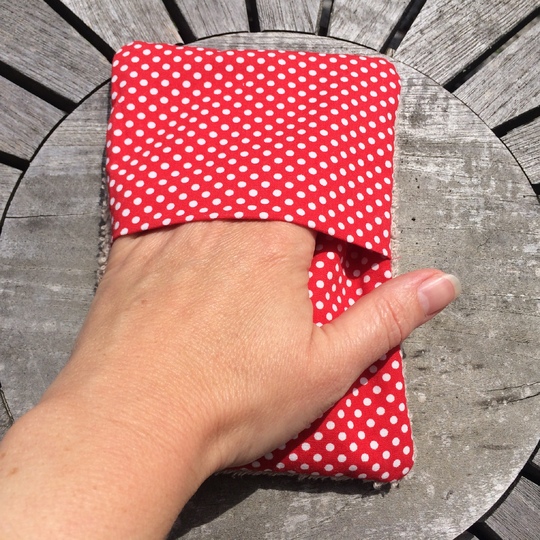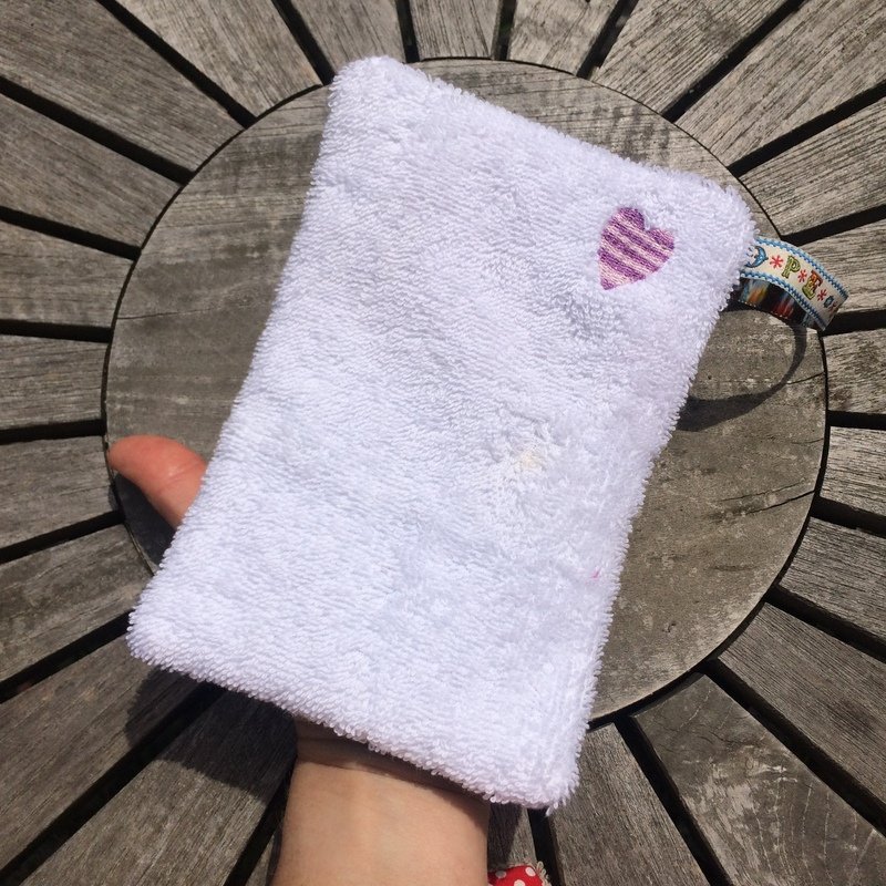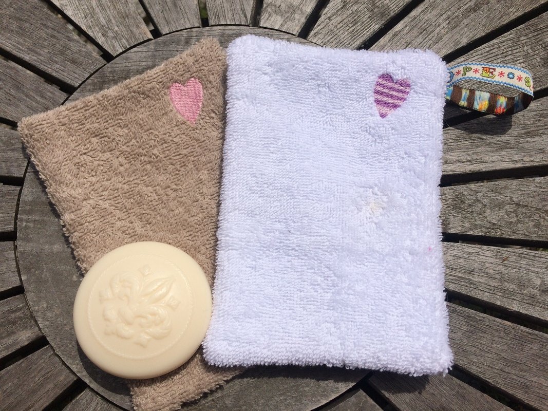 Der Waschlappen hat am Ende eine Breite von 12 cm und eine Länge von 17 cm.