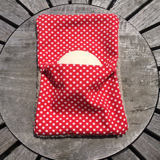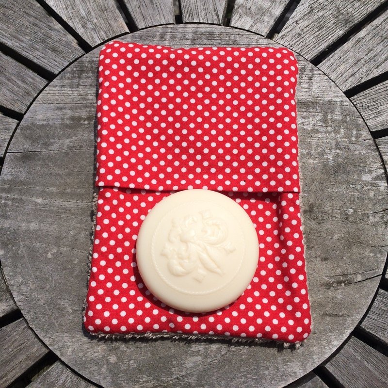 Auf der Rückseite ist ein sogenannter Hotelverschluss angebracht. In den unteren Teil legt man eine kleine Seife rein, in den oberen Teil schiebt man seine Hand rein.