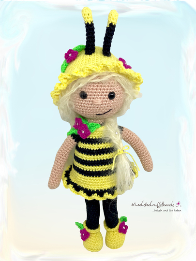 Kuschelschnuffelbande-Puppe Bienchen ist eine Häkelanleitung oder sogenannte Amigurumi Anleitung.