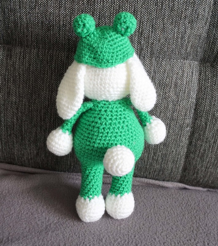 Hier bieten wir Ihnen unsere Häkelanleitung für den Hasen Lilly im Froschkostüm an!