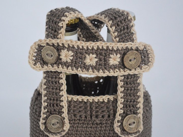 Anderes Material mit passender Häkelnadel ist möglich, muss dann aber an die Flaschenmaße selbständig angepasst werden.