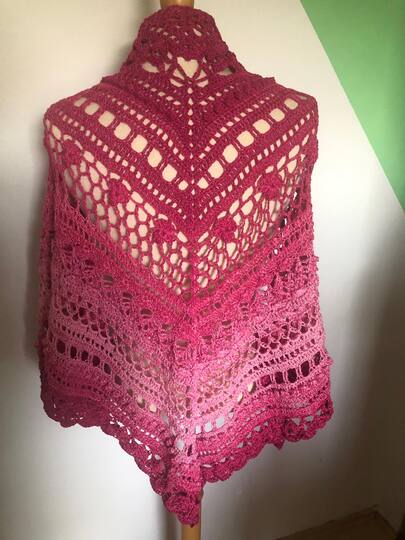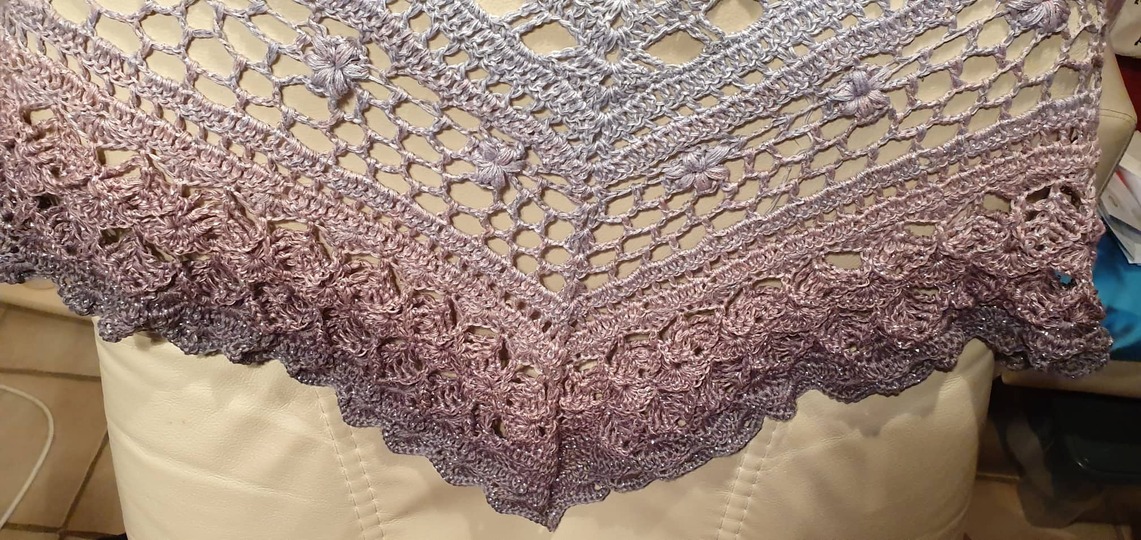 Ein verspieltes Tuch, mit dem wir die 100. Anleitung feiern und auch 5 Jahre Wuidkatz Design. Es ist quasi ein Best Of von meinen Lieblingstüchern