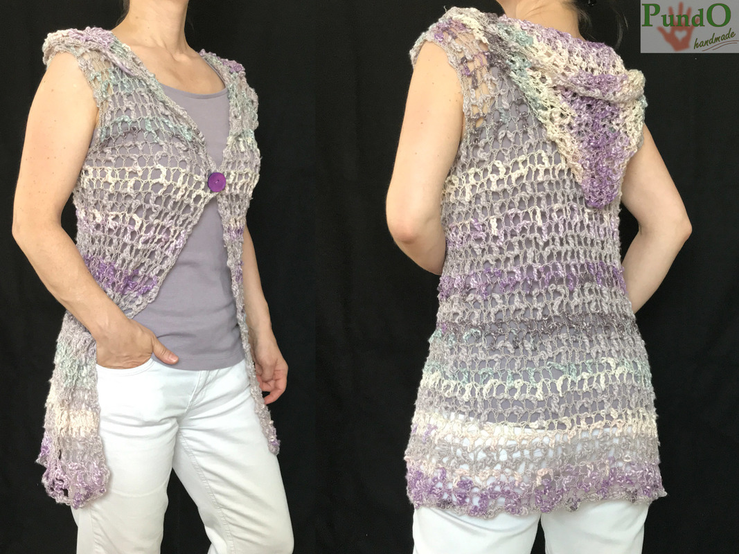 Diese Weste gehört zu meiner Serie „Anti-Stress-Häkeln“, da sie sich sehr einfach, schnell und ohne viel nachzudenken anfertigen lässt. Man kann super entspannen und dabei gleichzeitig eine schicke und bequeme Weste häkeln.