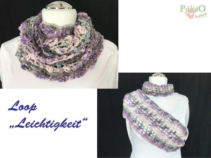 Dieser Loop leichte läßt sich einfach, schnell und ohne viel nachzudenken anfertigen. Man kann beim Häkeln super entspannen und dabei gleichzeitig einen schnellen und schicken Loop häkeln. Der Loop fällt locker und leicht und eignet sich daher auch gut an kühleren Sommer- und Herbstabenden.