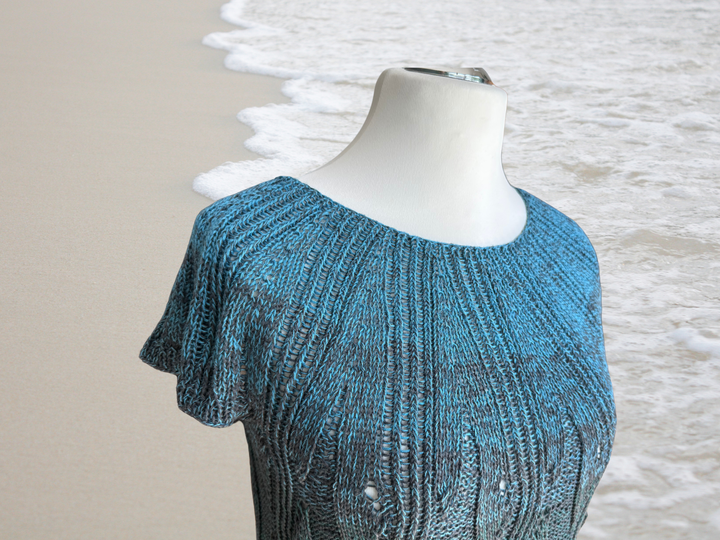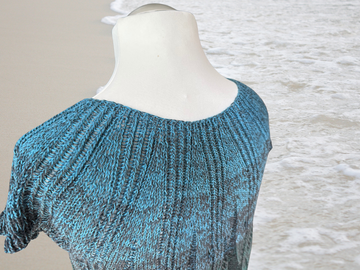 Die Tunika wird von oben nach unten in einem Stück in Runden gestrickt.
