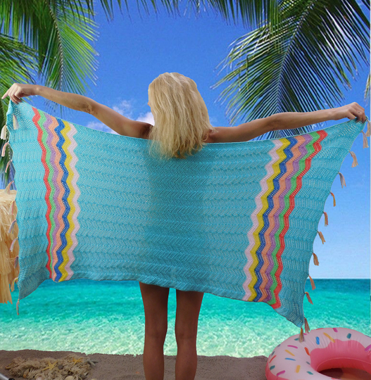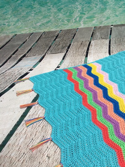 Dieses Strandtuch kann mit jedem beliebigem Garn häkeln.
