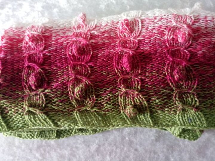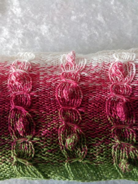 Mit dem ausgewöhnlichen Zöpfen und Noppen, genau das richtige für Zopfliebhaber. Die Anleitung enthält einen Chart, dieser wird so lange wiederholt bis Ihre gewünschte Höhe erreicht ist. Dieses Stück sollte von Stricker/innen nachgearbeitet werden, welche schon etwas Erfahrung haben. Für Anfänger könnte die Zopfvariante noch zuviel sein.