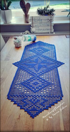 Da alles gut bebildert und jeder Abschnitt extra aufgeführt ist, ist der Tischläufer einfach nachzuarbeiten.