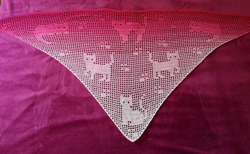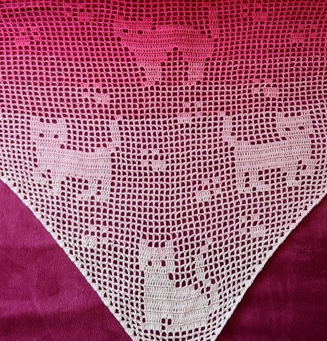 Die Anleitung ist auf 4 Seiten in teilweise Schrift (Erklärung Filethäkeln), der Anfang des Tuches in Pc-Häkelschrift und Zählraster geschrieben.