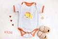 Der „Babybody Lou“ ist einfach zuckersüß. „Lou“ ist sehr schnell zu nähen und du hast die Wahl zwischen Langarm- und Kurzarm-Version. Durch den amerikanischen Ausschnitt lässt sich der Body einfach über Babies-Köpfchen ziehen und er sitzt locker. Verschlossen wird der Body im Schritt mit 2-3 Druckknöpfen.