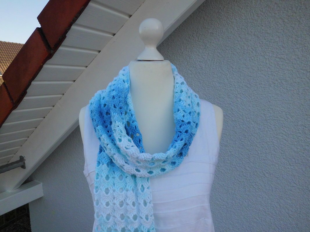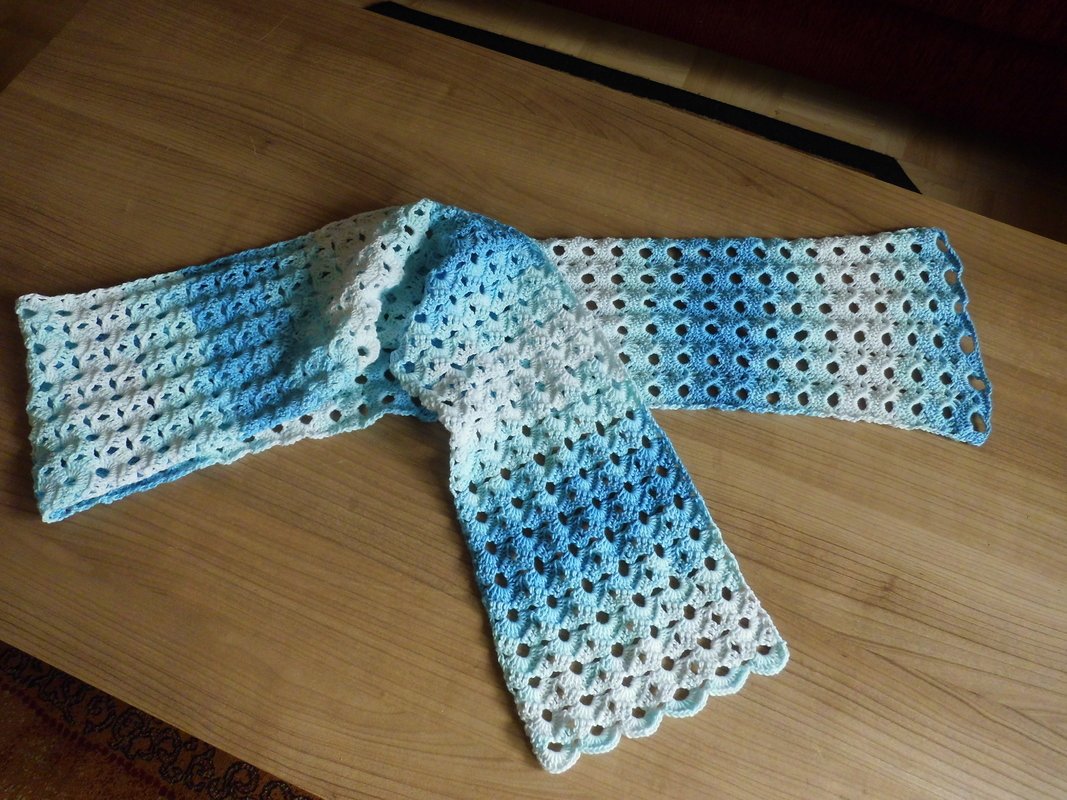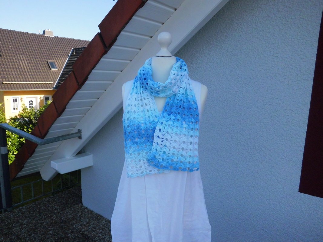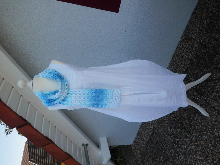 Größe des Schals 160 m x 18 cm , kann aber in jeder Größe nachgearbeitet werden