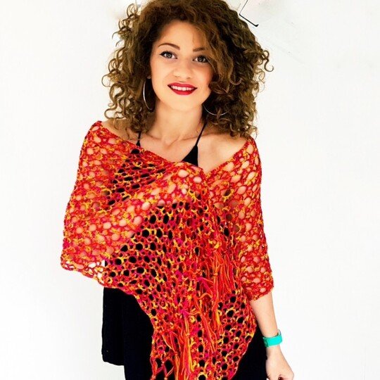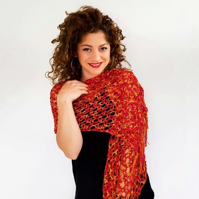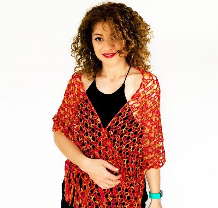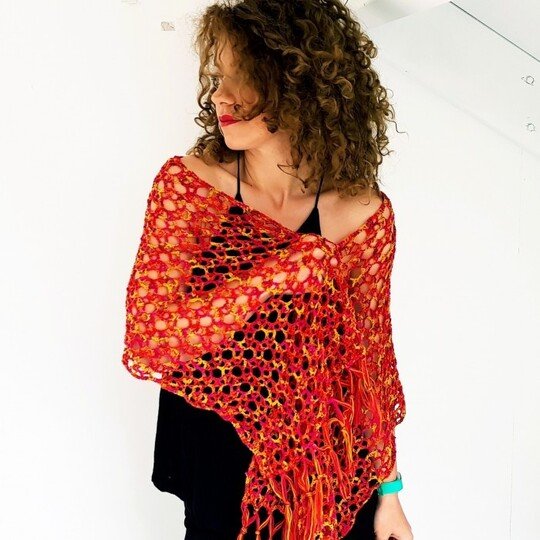 Der Ardiente Schal hat ein schlichtes Design. Er ist praktisch nur ein Viereck, das so lang und breit gehäkelt werden kann, wie du es möchtest.