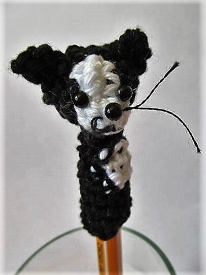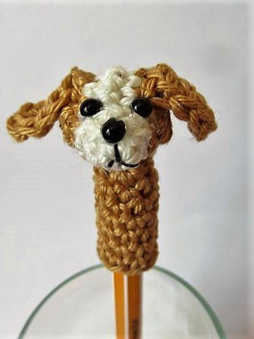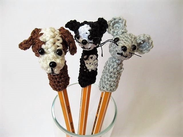 Die Stifte-Topper sind etwa 5 cm hoch und passen auf handelsübliche Bleistifte. Für dickere Stifte kann die Hülle durch 2 - 3 zusätzliche Maschen weiter gehäkelt werden.
