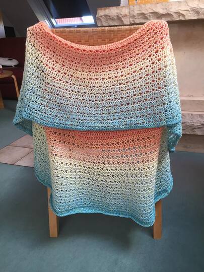 … es ist warm, man trägt ein Top und freut sich über den herrlichen Tag. Sitzt gemütlich draußen und erfreut sich an dem schönen Wetter. Doch gegen später wird es etwas kühler, vielleicht zieht eine Wolke auf, man möchte gerne etwas um den Rücken haben aber für eine richtige Weste ist es doch zu warm. Da braucht man etwas leichtes, dass den Rücken schützt. So kam mir bereits letztes Jahr die Idee eine ganz einfache kleine Weste zu arbeiten.