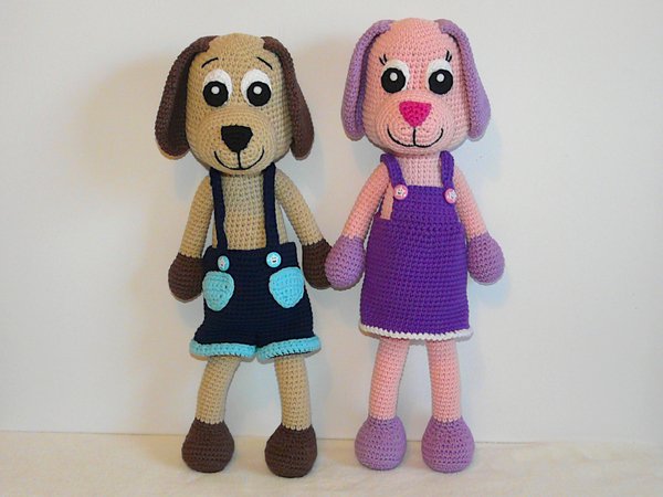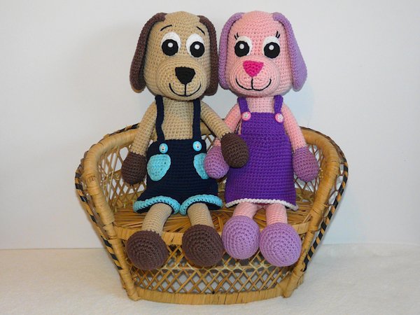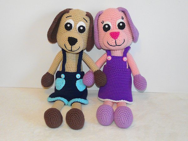 ABER: Je nach Garn- und Häkelnadelstärke variiert die Größe von den Hunden.