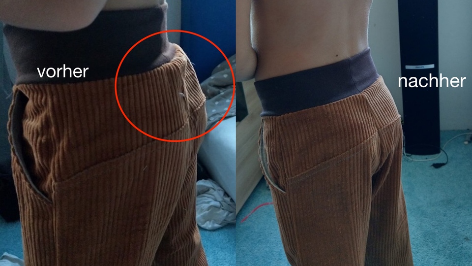 -Hüftweite anpassen, Schritthöhe ändern, runde Pos einarbeiten