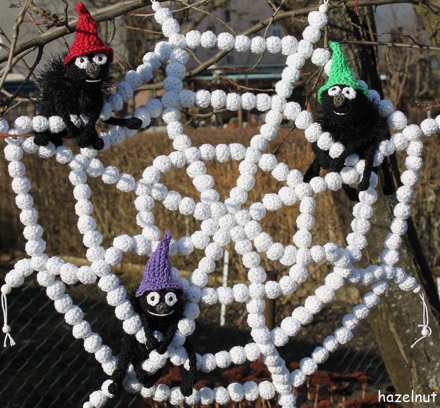 In den Spinnenbeinen werden Kugelmagnete eingearbeitet, so dass du das Spinnlein z.B. in ein Spinnennetz einhängen kannst.