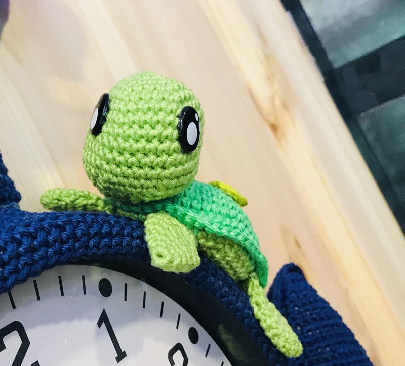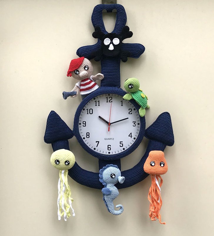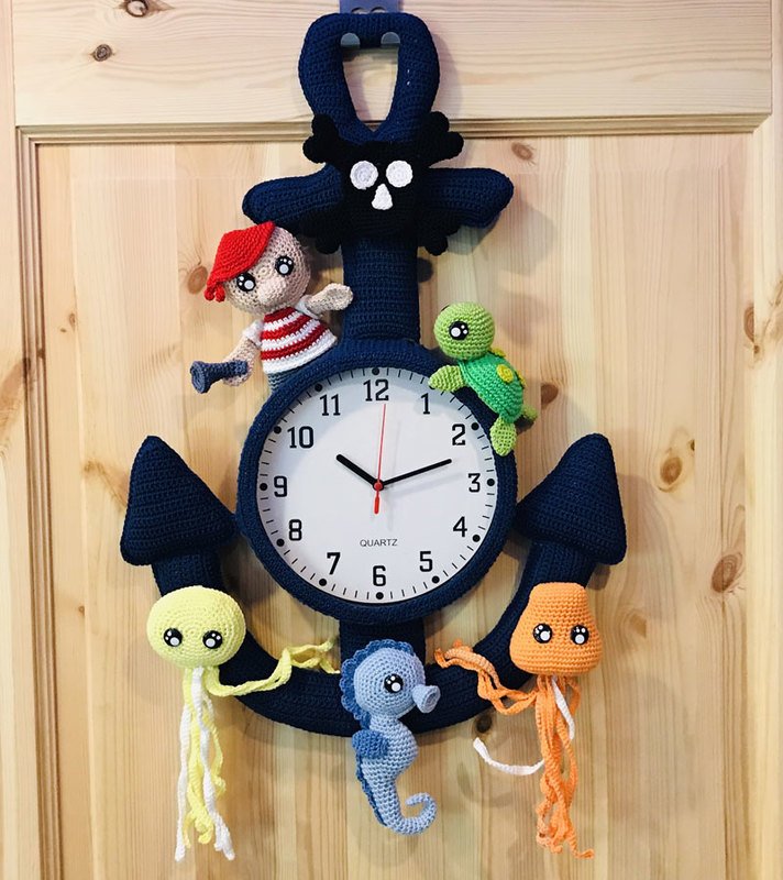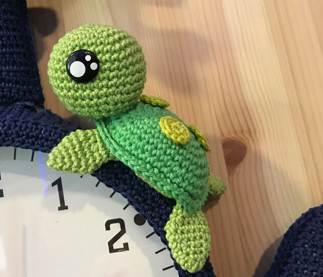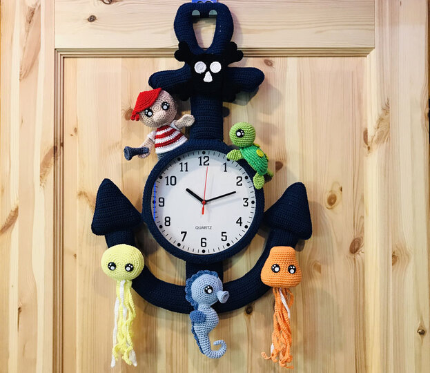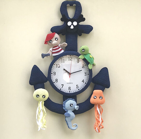 Der Wanduhr ist nicht nur für Kinder eine Überraschung und im Prinzip ganz einfach nachgehäkelt.