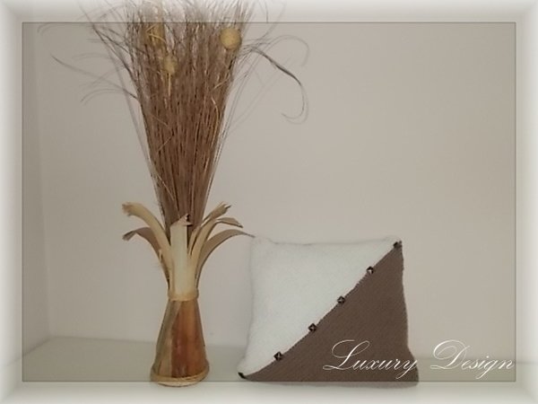 Ein Kissen,das sich fast jedem Wohnstil anpasst.Durch die Nieten wird es zu einem besonderen Schmuckstück im Wohn-,oder Schlafbereich. Beim Waschen gibt es mit den Nieten keine Probleme sie können bei 30 Grad mitgewaschen werden.