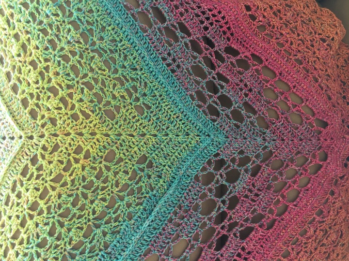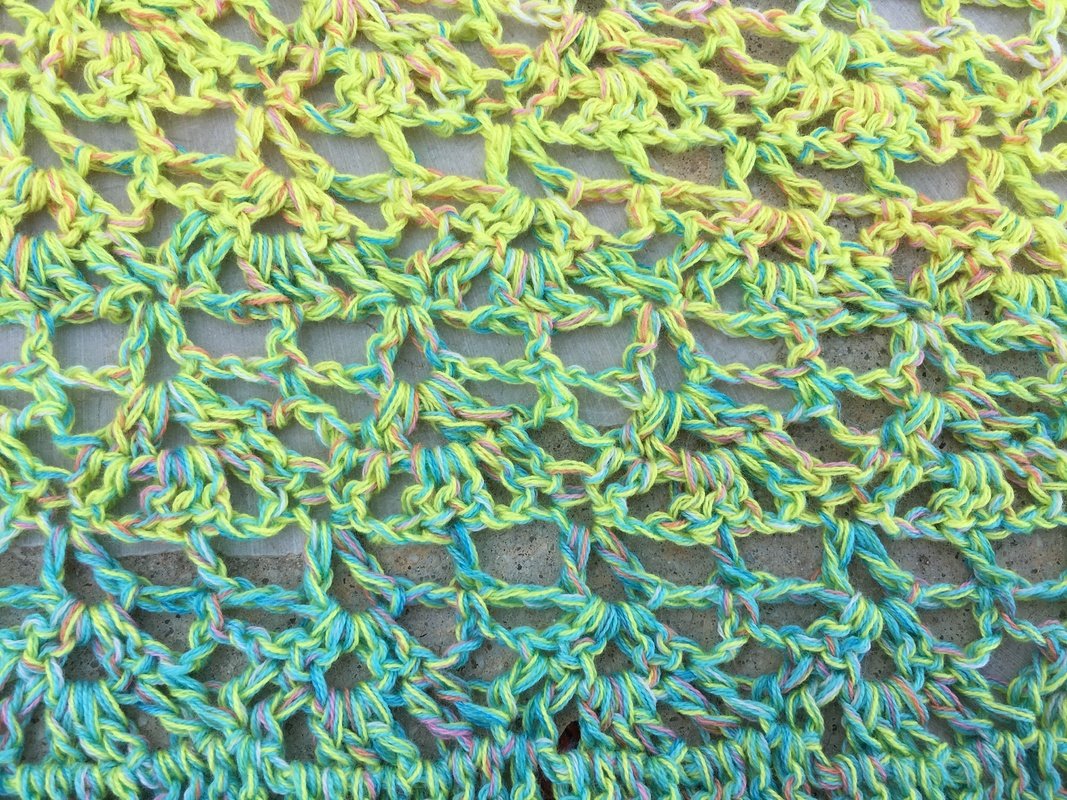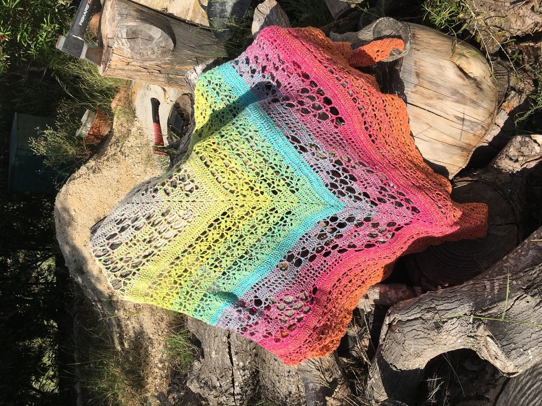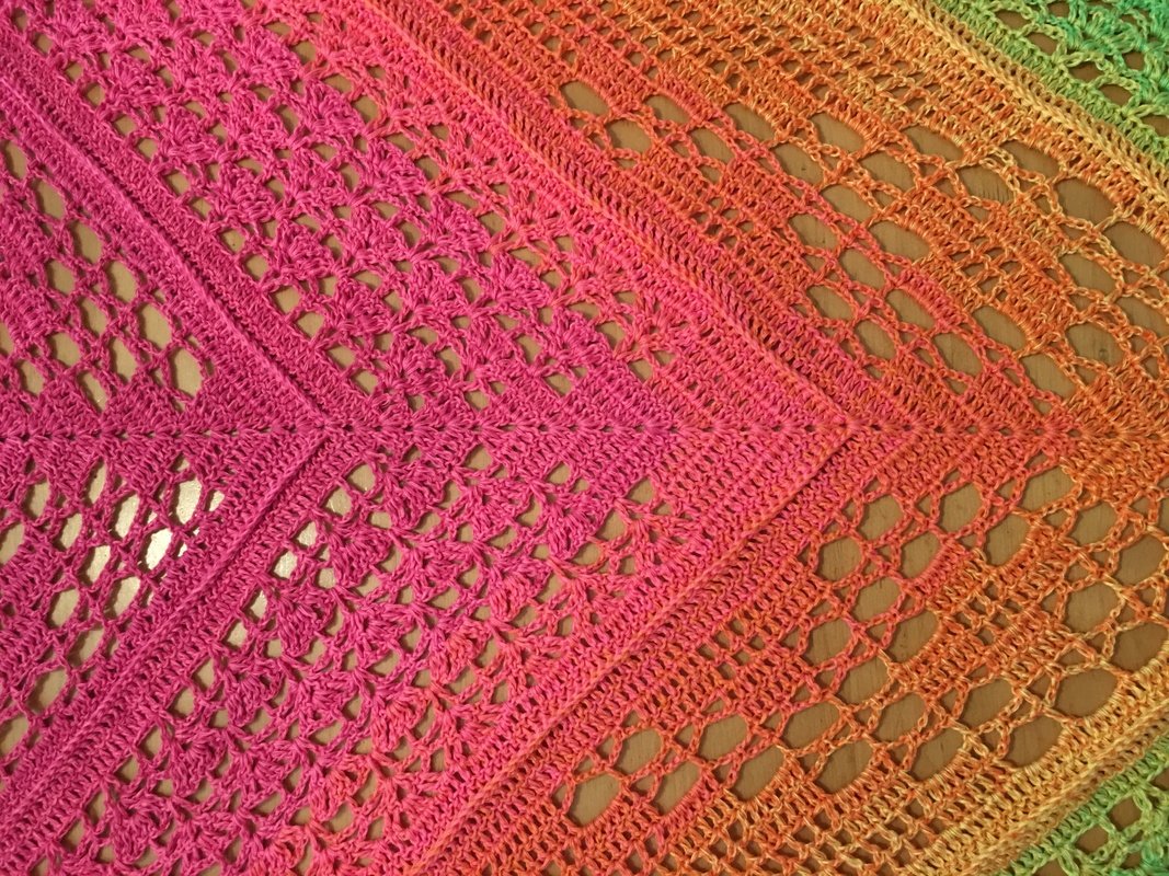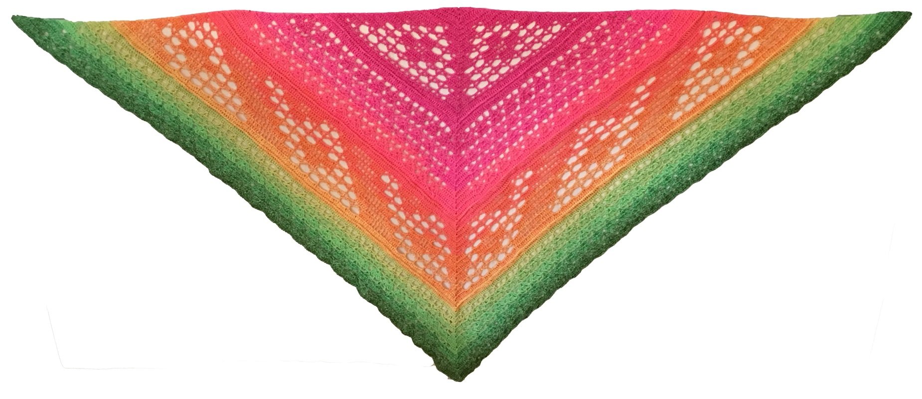 Die Anleitung besteht aus einer ausgeschriebenen Anleitung und einer Häkelschrift für jede Reihe dieses Tuches.