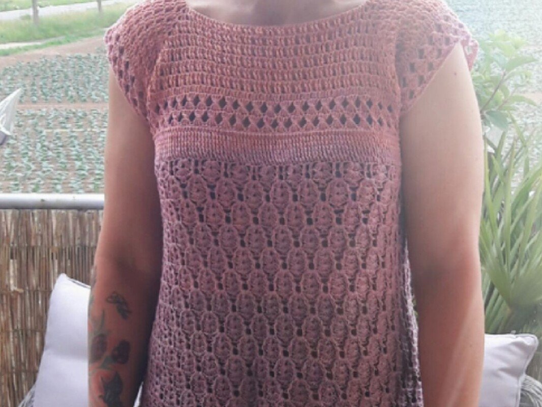 Nach dieser Anleitung kannst Du dir ein modisches Tunika-Shirt häkeln. Es wird an einem Stück von oben nach unten gehäkelt. Es macht so einen Spaß die verschiedenen Muster zu häkeln und die Bordüre im oberen Teil bildet in jeder Größe den perfekten Armabschluss.