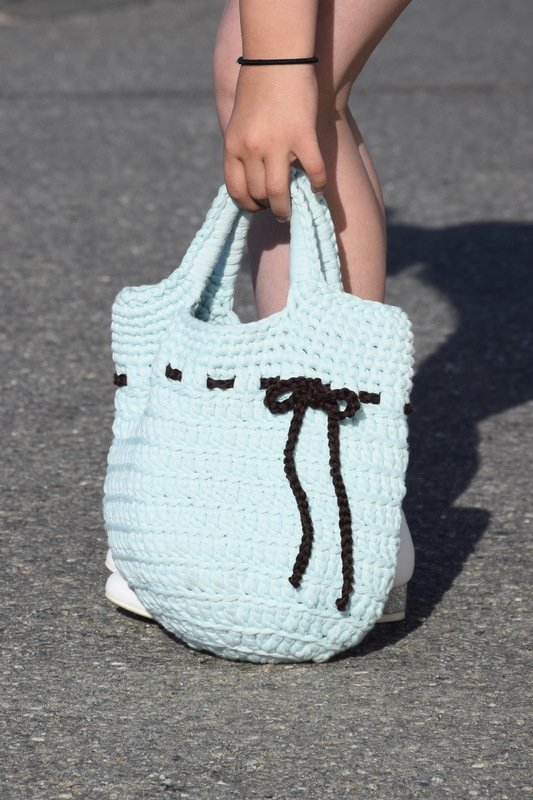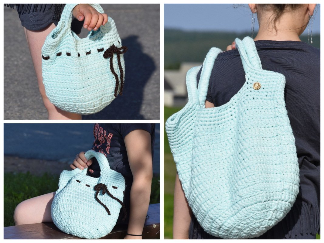 Ich habe hier ein dickes Bändchengarn ausgesucht. Ich häkle sehr gern damit, denn es lässt sich schnell verarbeiten und die Tasche erhält eine schöne grobe Struktur. Die Tasche ist sehr einfach, die Anleitung ausführlich erklärt und daher gut für Anfänger. Sie beinhaltet 2 verschiedene Größen, einmal für Kinder und einmal für Erwachsene mit 2 verschiedenen Henkellängen. Du kannst auch gern mit jedem Garn deiner Wahl arbeiten und die Tasche nach deinen Wünschen anpassen. Zum Schluss kann die Tasche noch mit einem Band, Knöpfen oder einer Applikation verziert werden. Hier sind deiner Kreativität keine Grenzen gesetzt.