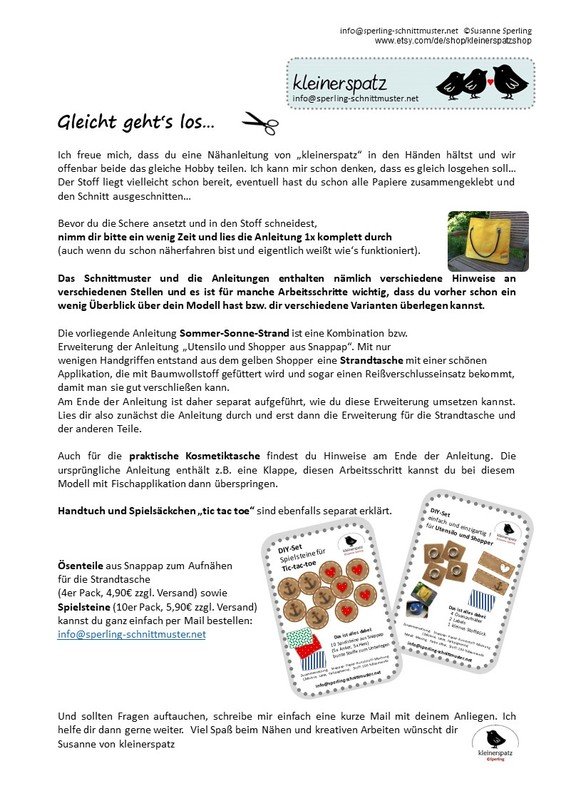 Auf 25 Seiten findet ihr eine ausführliche Schritt-für-Schritt-Anleitung aller abgebildeten Dinge: Strandtasche, Handtuch mit Applikation, Kosmetiktasche und ein praktisches Spiel für unterwegs. Zeichnungen und genaue Erklärungen zeigen alles ganz verständlich, so dass auch Anfänger ihre Freude beim Nähen haben werden.