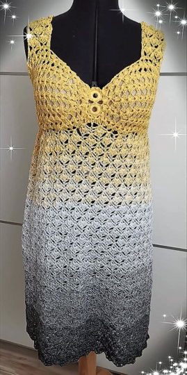 Mit diesem wunderschönen Häkelkleid, welches Du allerdings auch als Tunika arbeiten kannst, sind Dir die bewundernden Blicke sicher. Es ist ein echter Hingucker!