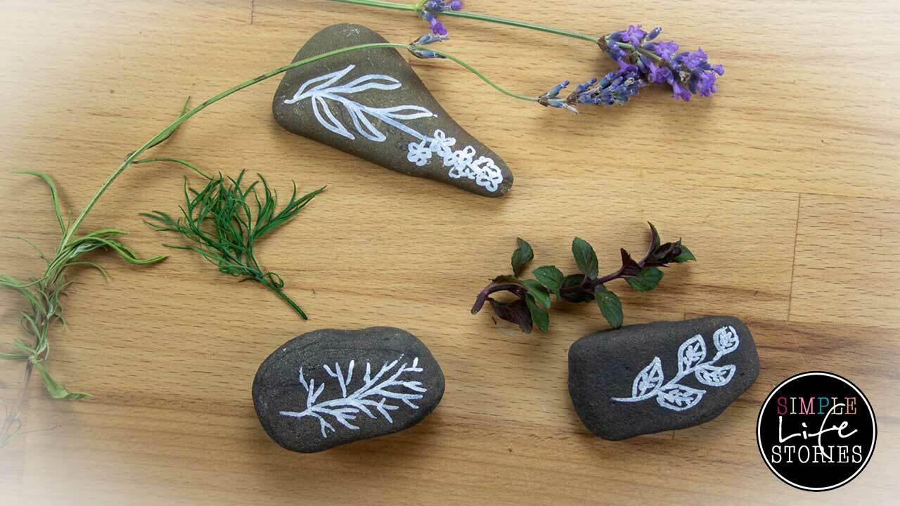 Bemalte Steine sind nicht nur schön anzusehen, sie sind auch wichtig, denn sie zeigen dir welche Kräuter in deinem Beet wachsen. Die Steine widerstehen jedem Wetter das gemalte ist wasserfest.