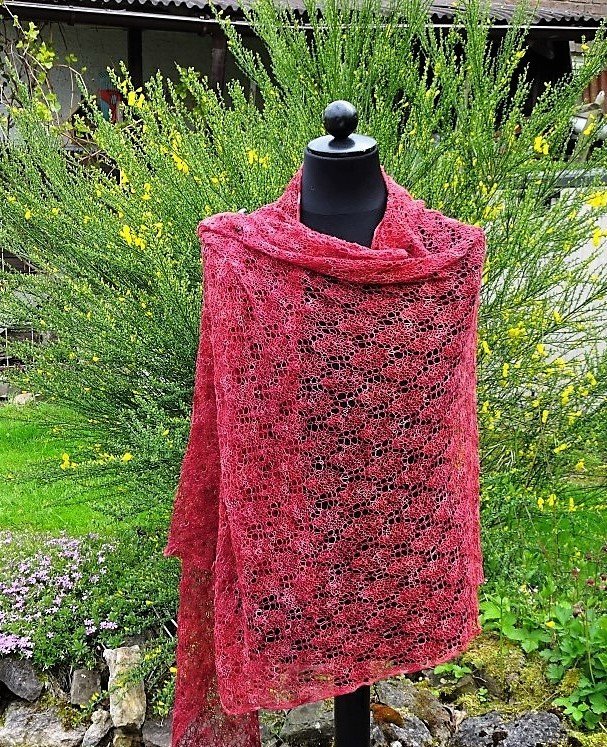 Ich habe Marita Lace von Schmeichelgarne, gefärbt von Buttjebeyy (im Onlineshop erhältlich) verstrickt.