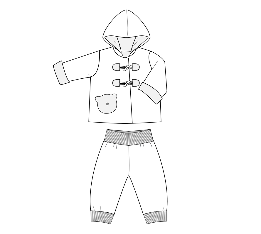 Mit dem Schnittmuster-Set BRIO + LUCCA nähst du ein komplettes, warmes Baby-Outfit für Jungen und Mädchen: eine gefütterte Kapuzenjacke mit Holzknöpfen, Bär-Applikation und Armumschlägen sowie eine bequeme Wendehose mit Strickbündchen. Perfekt für Herbst, Winter und Übergangszeit und ideal als handgemachtes Geschenk.